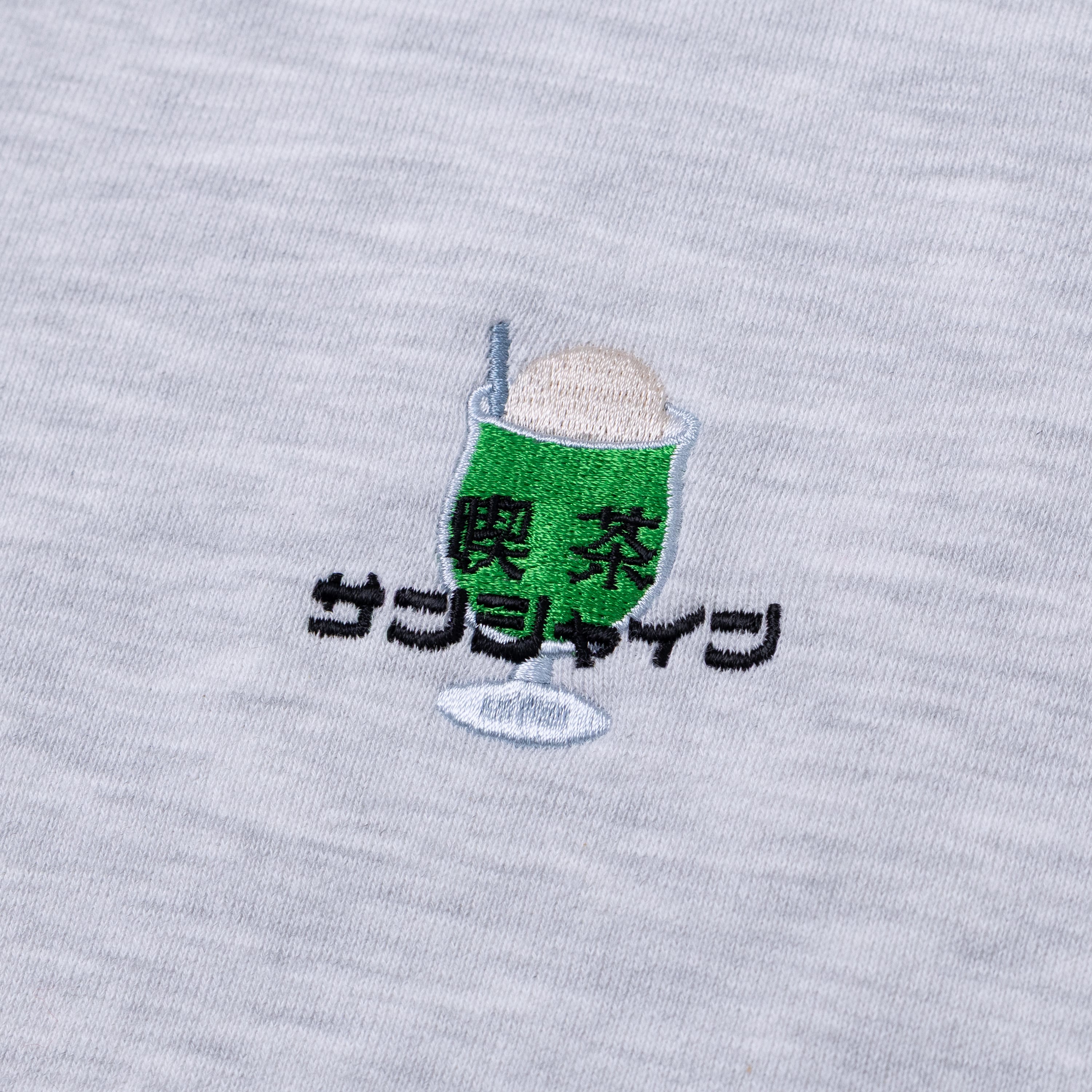 グリーンのソーダとアイスクリームを表現した刺繍と