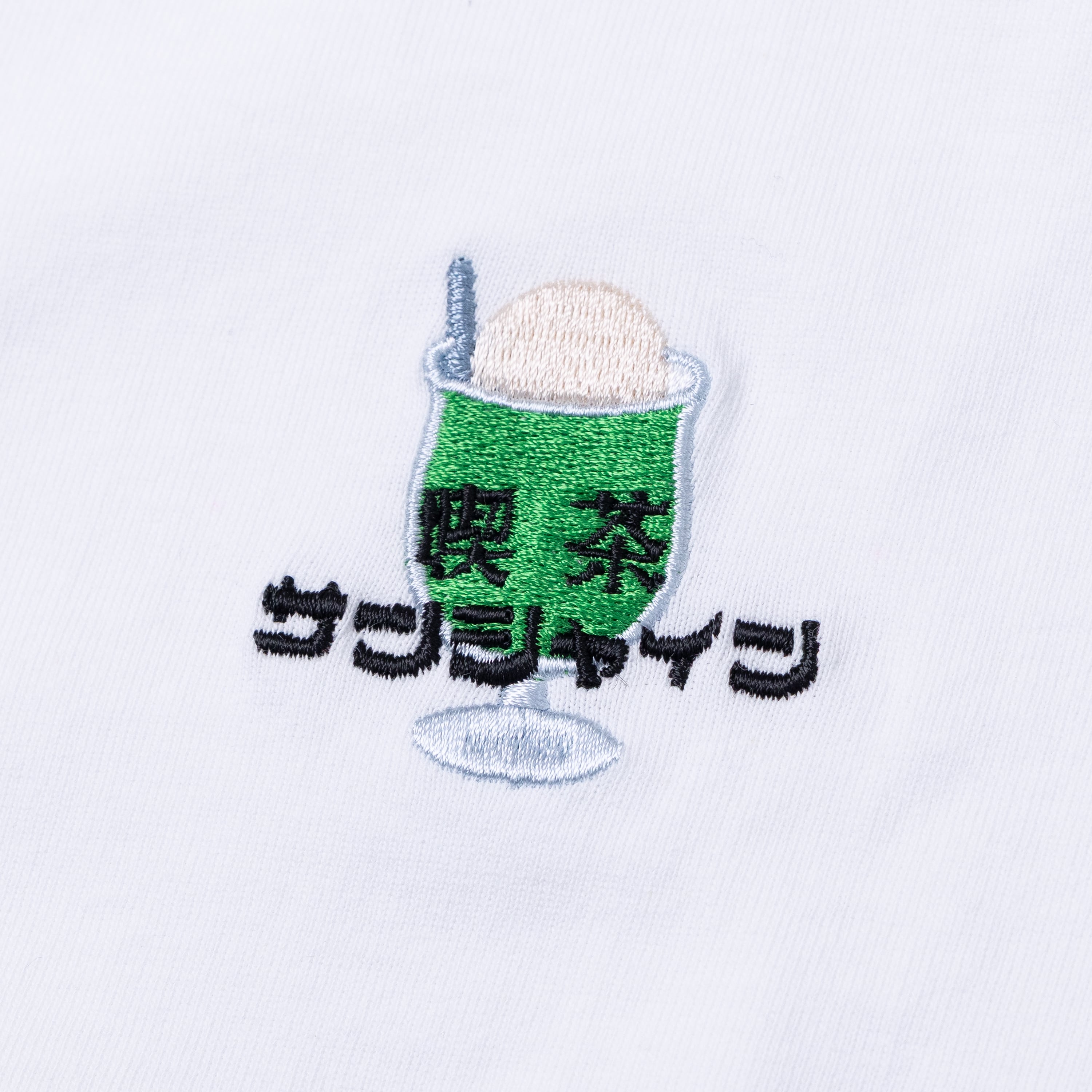 喫茶サンシャイン クリームソーダ刺繍Tシャツ(ホワイト/ブラック・6.2oz)