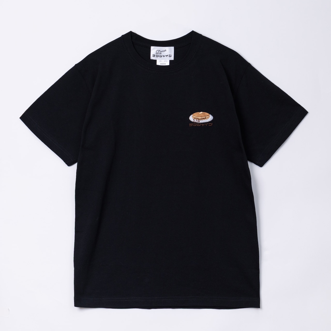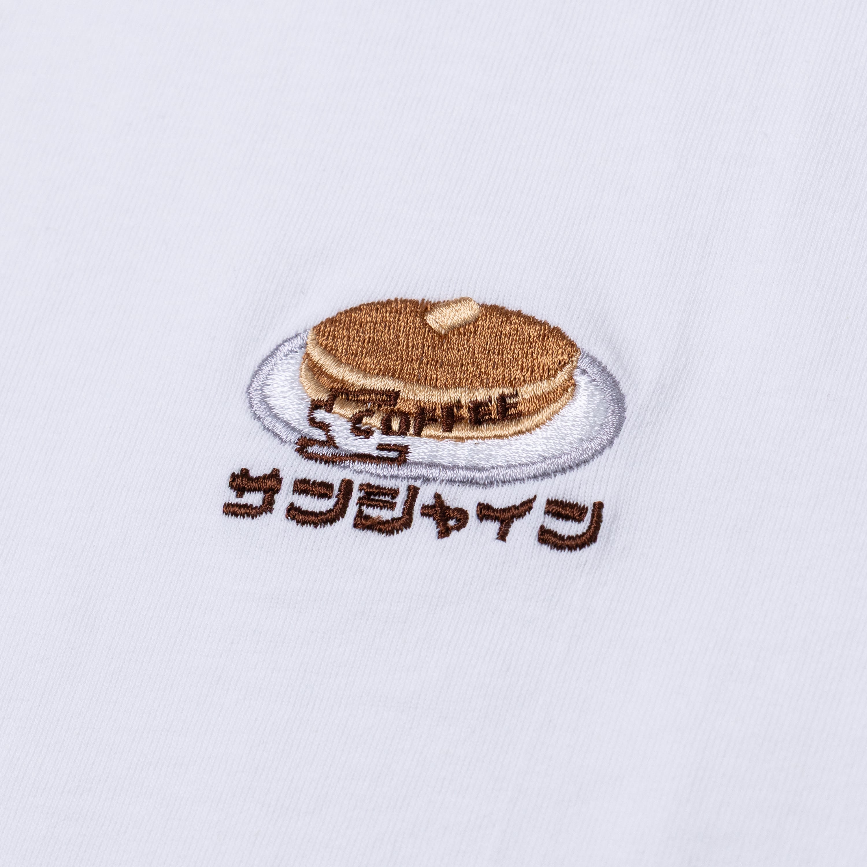 喫茶サンシャイン ホットケーキ刺繍Tシャツ(ホワイト/ブラック・6.2oz)