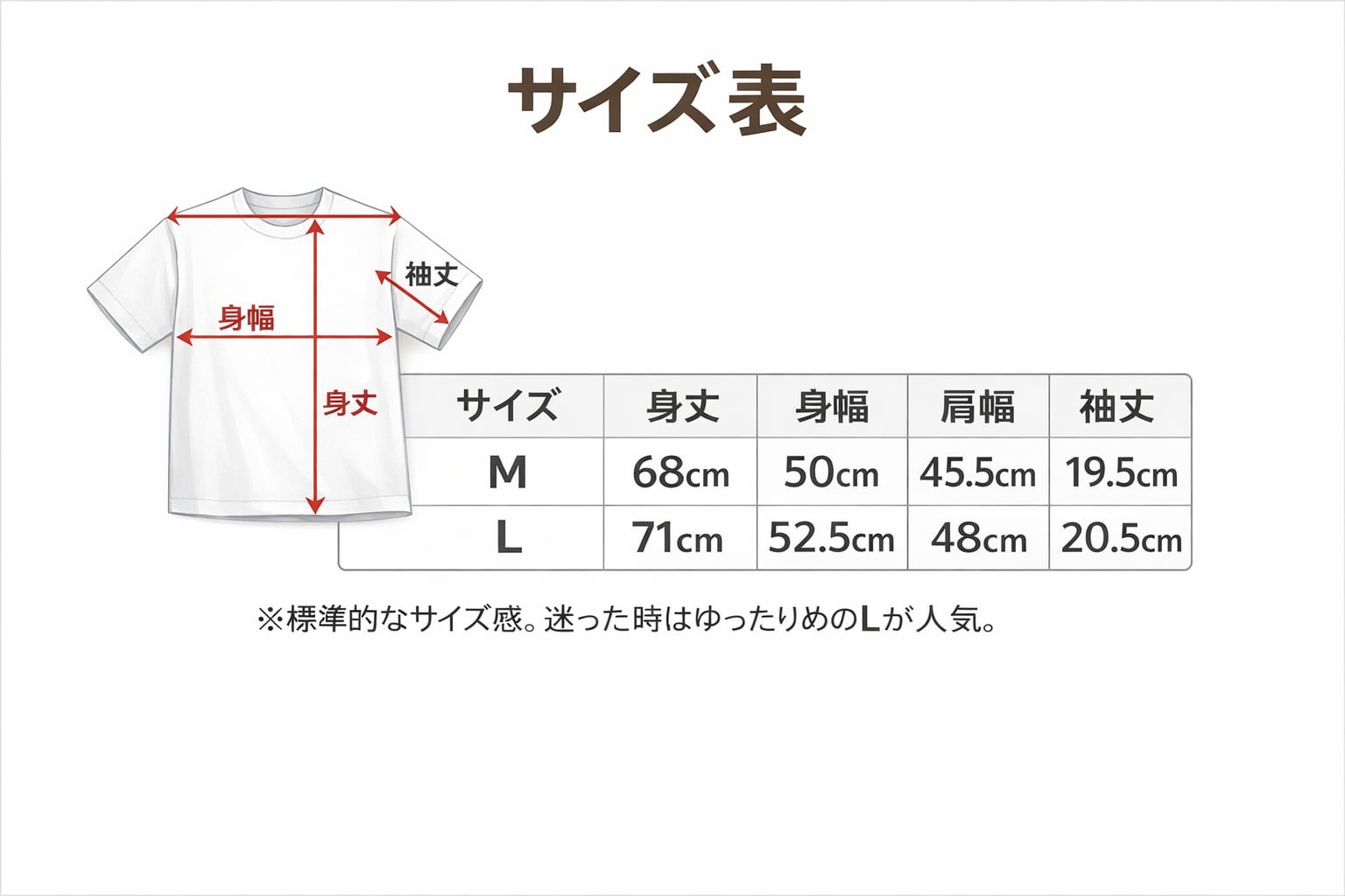 ※標準的なサイズ感。迷った時はゆったりめのLが人気。